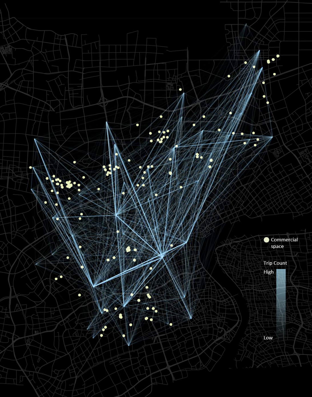 The data visualization shows that the similarities go beyond space: even commercial spaces far apart from each other are similar in architectural styles. However, whether the physical/ digital connection between two places is high or not still needs to be tested.